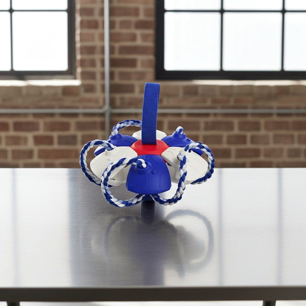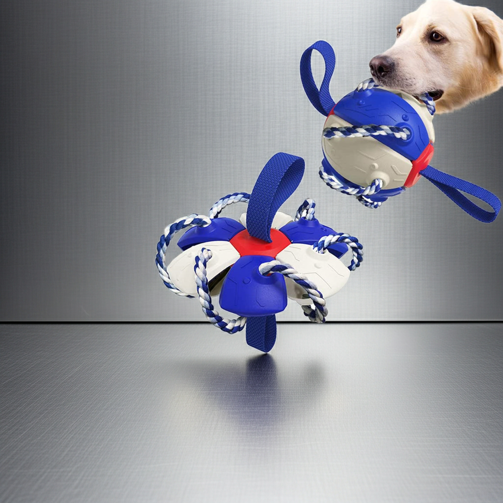 ✅ 2-i-1 Design: Den smarta konstruktionen gör att bollen kan vecklas ut och användas både som en traditionell kastboll och som en utmanande leksak för dragkamp.